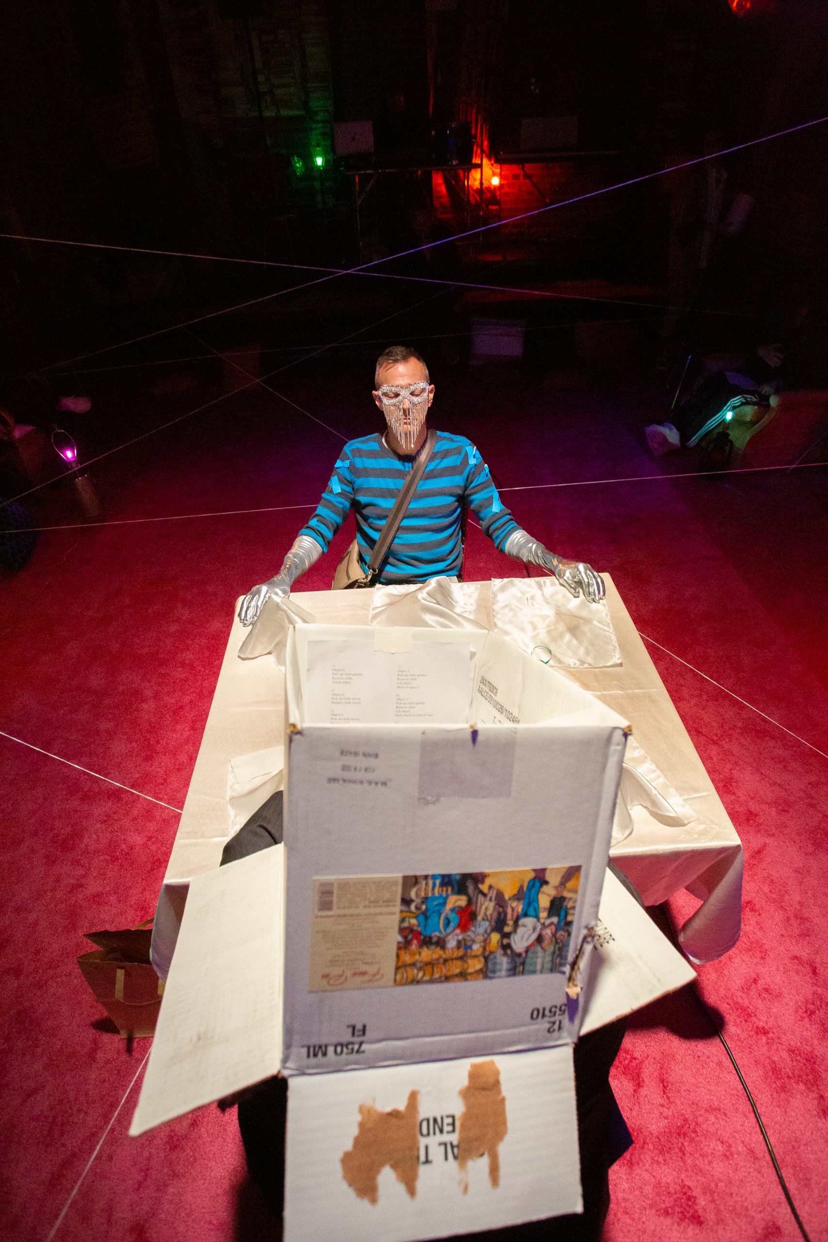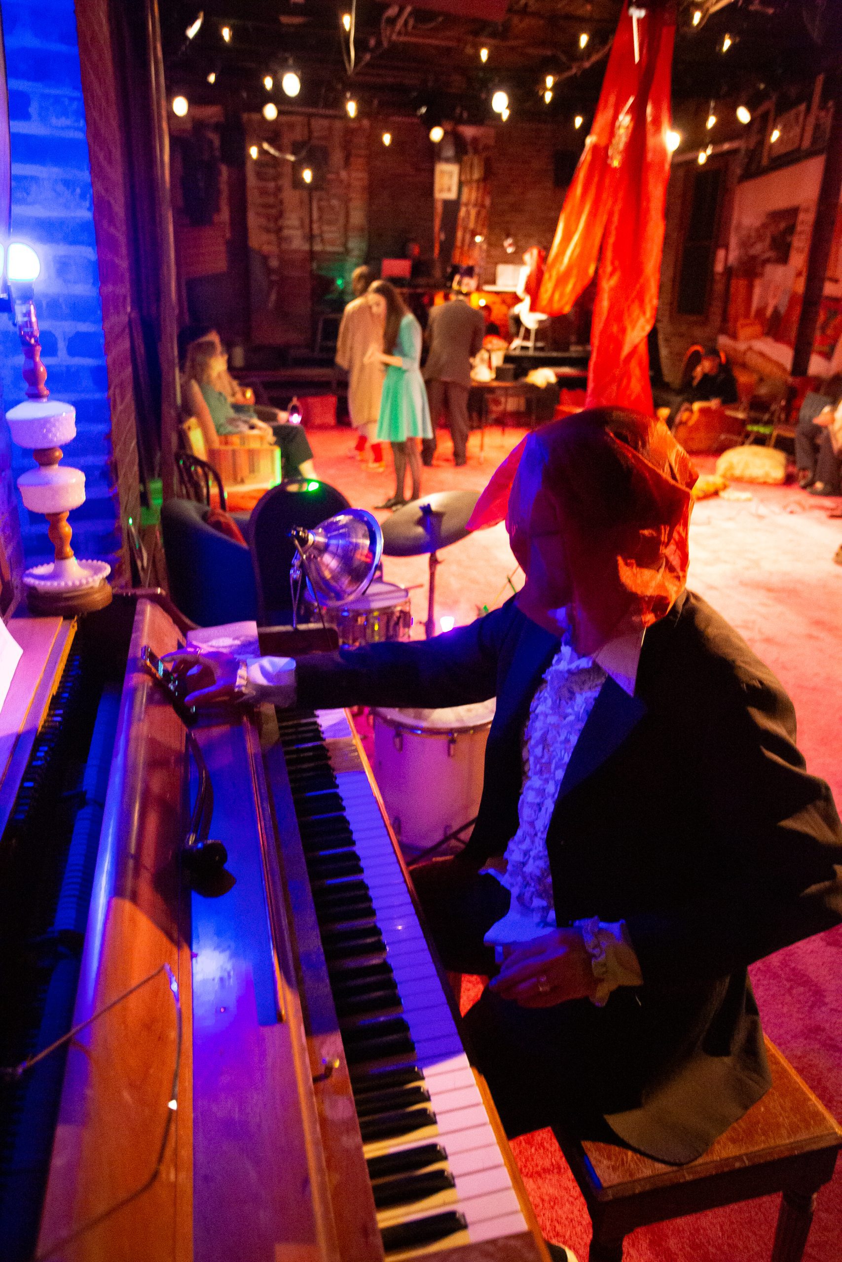 A performance at the end of time, the last house concert of them all. Or the first, before everything. Casual, using whatever is at hand. After everything has been done, we do this anyway, just because. Because this is what we do in our house, with our invited guests. Getting amongst it.
