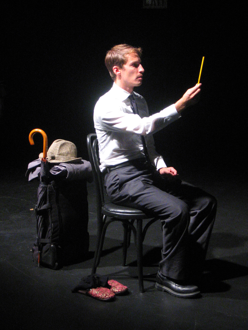 Built out of cut-up fragments from a 1950’s British English language textbook for aspiring businessmen, Is this a gentleman is a 40 page action manual for theatrical performance. Two men negotiate their status as performers within a landscape of mundane, iconic objects. Outfitted with contact microphones that amplify the smallest activity, the stage becomes an uncharted territory of explosive sound, extra-ordinary images, and strange resonances